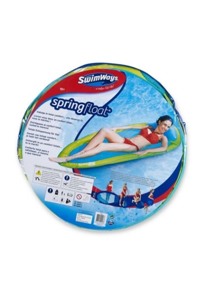 Deze drijvende matras wordt ook wel de "drijvende hangmat" genoemd. De Spring Float is een soort drijvende hangmat. Hiermee kan je uren in het water drijven van je zwembad. Doordat je lichaam deels in het water zit, krijg je pas echt het gevoel dat je op het water drijft.